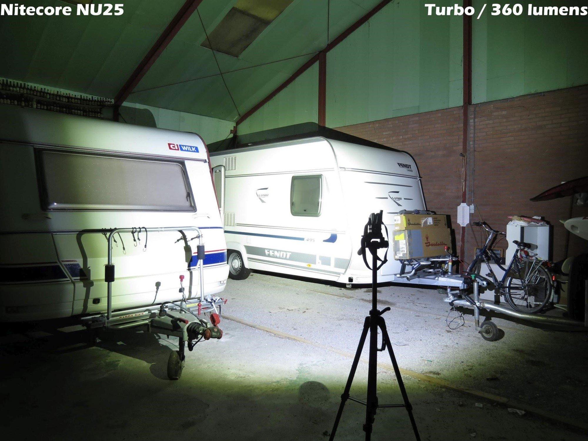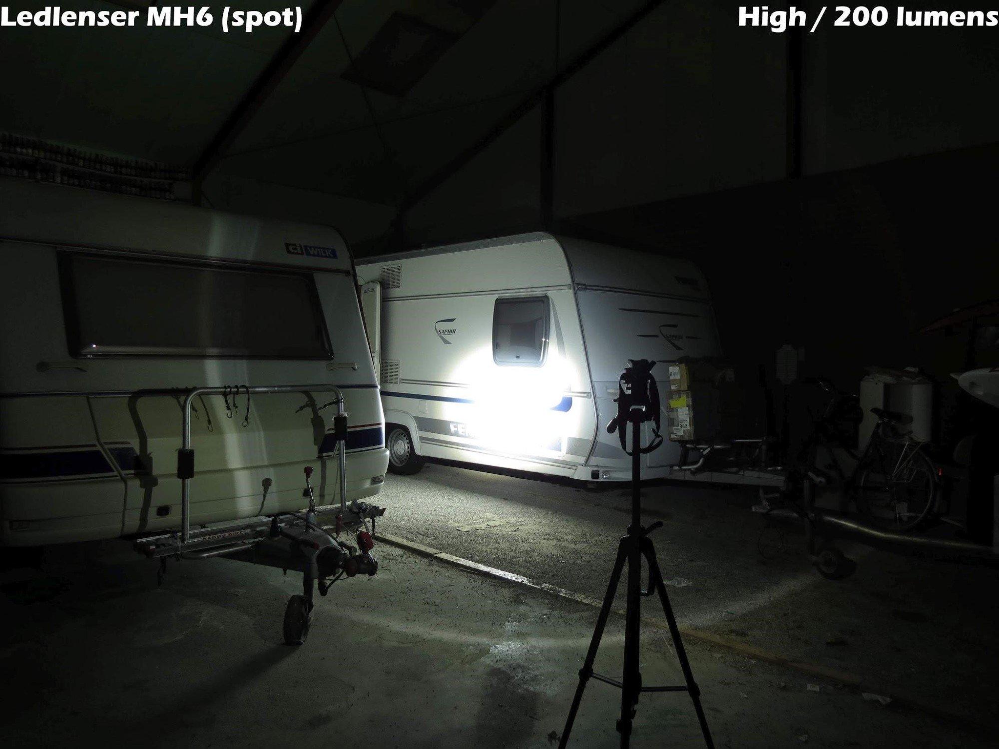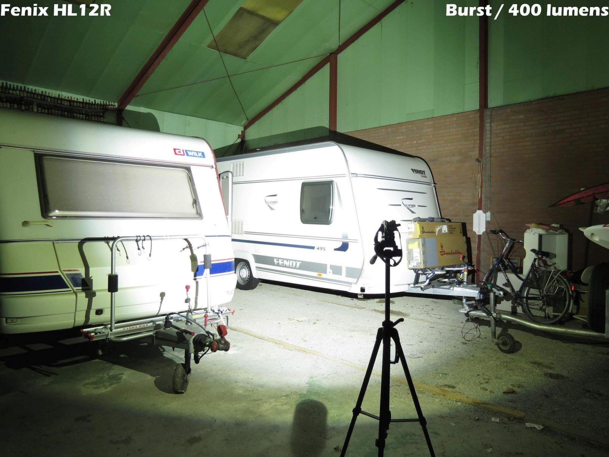 De eerste locatie is een opslagloods waarin wat caravans staan. Dit geeft een leuk beeld van hoe deze hoofdlampen het op de camping doen. Mooie bijkomstigheid is dat de witte caravans ook goed de tint van de lampen laten zien. We starten met de witte led in de hoogste stand. Om het overzichtelijk te houden de vijf lampen in alfabetische volgorde.