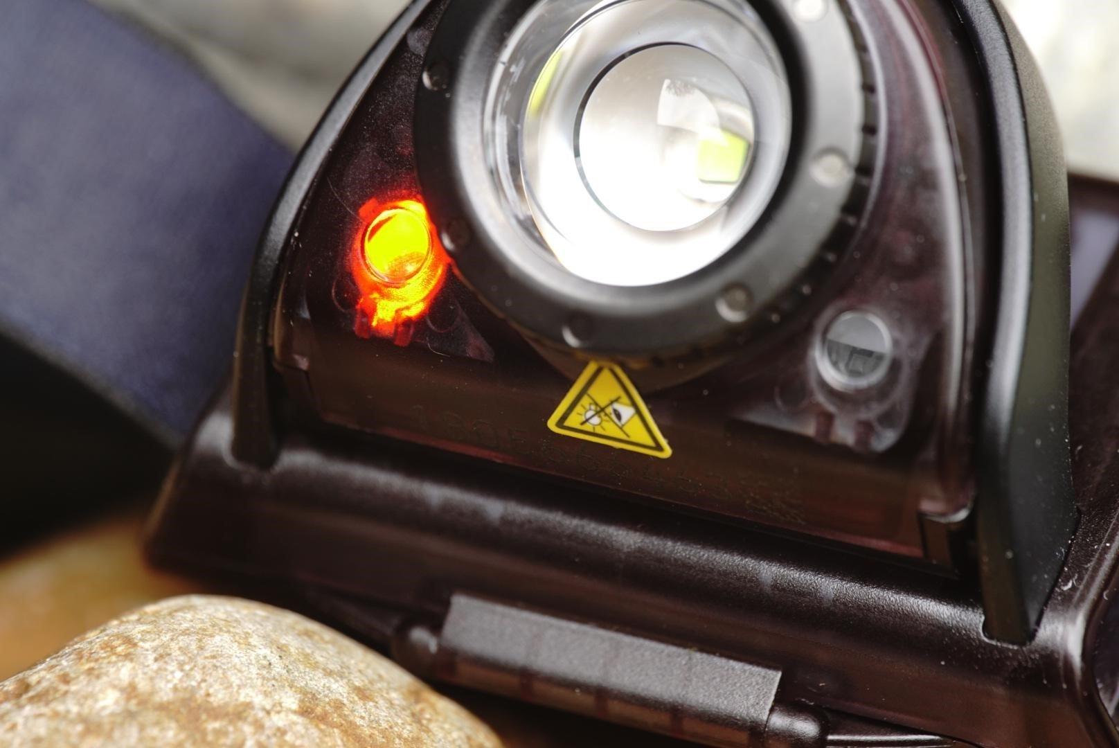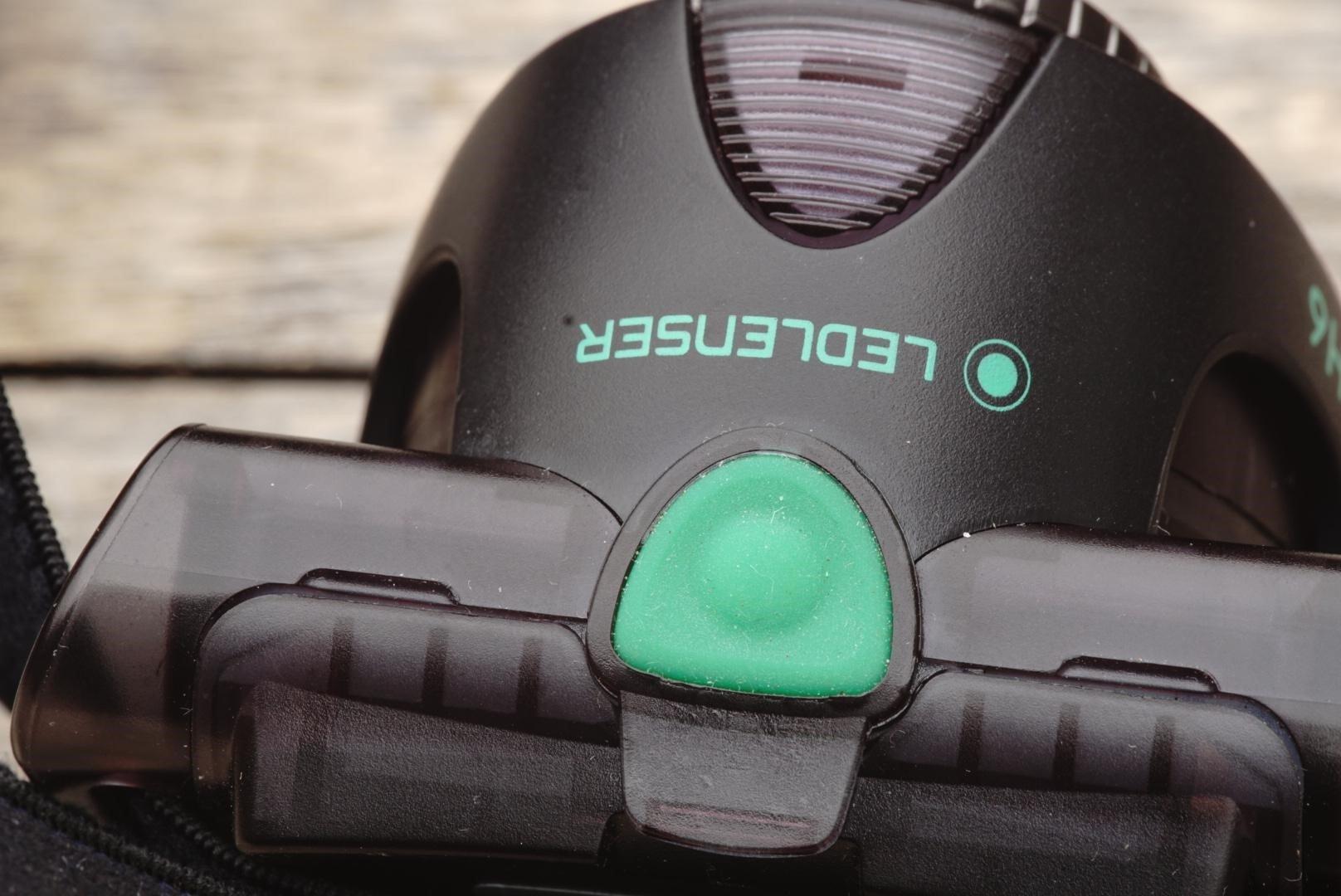 De Ledlenser heeft slechts twee witte lichtsterktes, dat hadden er van mij wel wat meer mogen zijn. Door middel van klikken schakel je de MH6 in op de hoogste stand, vervolgens krijg je laag en dan wit knipperend. Doorschakelen naar de volgende lichtstand gaat alleen wanneer je snel bent, want na enkele seconden lukt dat niet meer: dan staat de gekozen lichtstand “vast” en zal bij de volgende klik uitgaan. Ik blijf dit een wat eigenaardig idee van Ledlenser vinden. Ook deze lamp heeft geen mode-memory: de laatst gebruikte lichtstand wordt niet onthouden. Om het rode lampje aan de praat te krijgen moet je de schakelaar vanuit standby net zo lang ingedrukt houden totdat de lamp wisselt van rood naar wit of andersom. In de rode modus schakel je via de eerste klik continue rood in, de volgende stap is knipperend rood en de laatste stap is weer uit. De Ledlenser laat zich prettig bedienen dankzij het goede drukpunt van de schakelaar, maar heeft een ietwat eigenaardige interface. Doordat je altijd in de hoogste stand moet inschakelen, kan dit wel hinderlijk zijn wanneer er bijvoorbeeld iemand naast je in een tent ligt te slapen. Deze lamp is als enige focusseerbaar; dit werkt super eenvoudig en kan erg handig zijn wanneer je bijvoorbeeld een onderdeel onder een motorkap goed wilt belichten.