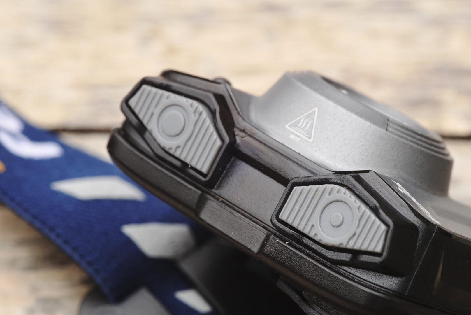De Nitecore heeft een dubbele schakelaar wat niet overbodig is omdat deze lamp veruit de meeste opties heeft van de vijf hier belichte hoofdlampen.De linkse button is voor wit, de rechtse voor rood. Een enkele klik schakelt de laagste witte stand in, bij de volgende klik krijg je respectievelijk middel, hoog en vervolgens uit. Ook de Nitecore zet de stand “vast” na enkele seconden, waardoor je om van lichtstand te wisselen (na pakweg 5 seconden tijd) de lamp uit moet zetten en vervolgens weer inschakelen om je gewenste stand te kiezen. Ook de laatst gebruikte stand wordt niet onthouden door de NU25. De hoogste “burst”-stand activeer je door bij ingeschakeld wit licht de schakelaar ingedrukt te houden. De secundaire witte led schakel je in door je linkerbutton ingedrukt te houden in de standby modus. Met de rechterknop breng je de rode led tot leven, beginnend bij de laagste stand, daarna komt hoog, dan knipper en als laatste uit. Er zit nog een optie verscholen in de rechtse knop: door middel van lang indrukken (in standby) geeft de lamp de accustatus aan. Handige optie, die je alleen terugvindt op de Nitecore en de Fenix. Nitecore heeft bij de NU25 een goede manier gevonden om alle opties zo eenvoudig mogelijk terug te vinden; ik had wel graag gezien dat de lamp (met name in de witte modus) de laatst gekozen lichtstand onthoudt. De knoppen zijn erg klein en lijken teveel op elkaar, dat maakt deze lamp minder geschikt voor handschoenen of erg grote handen.