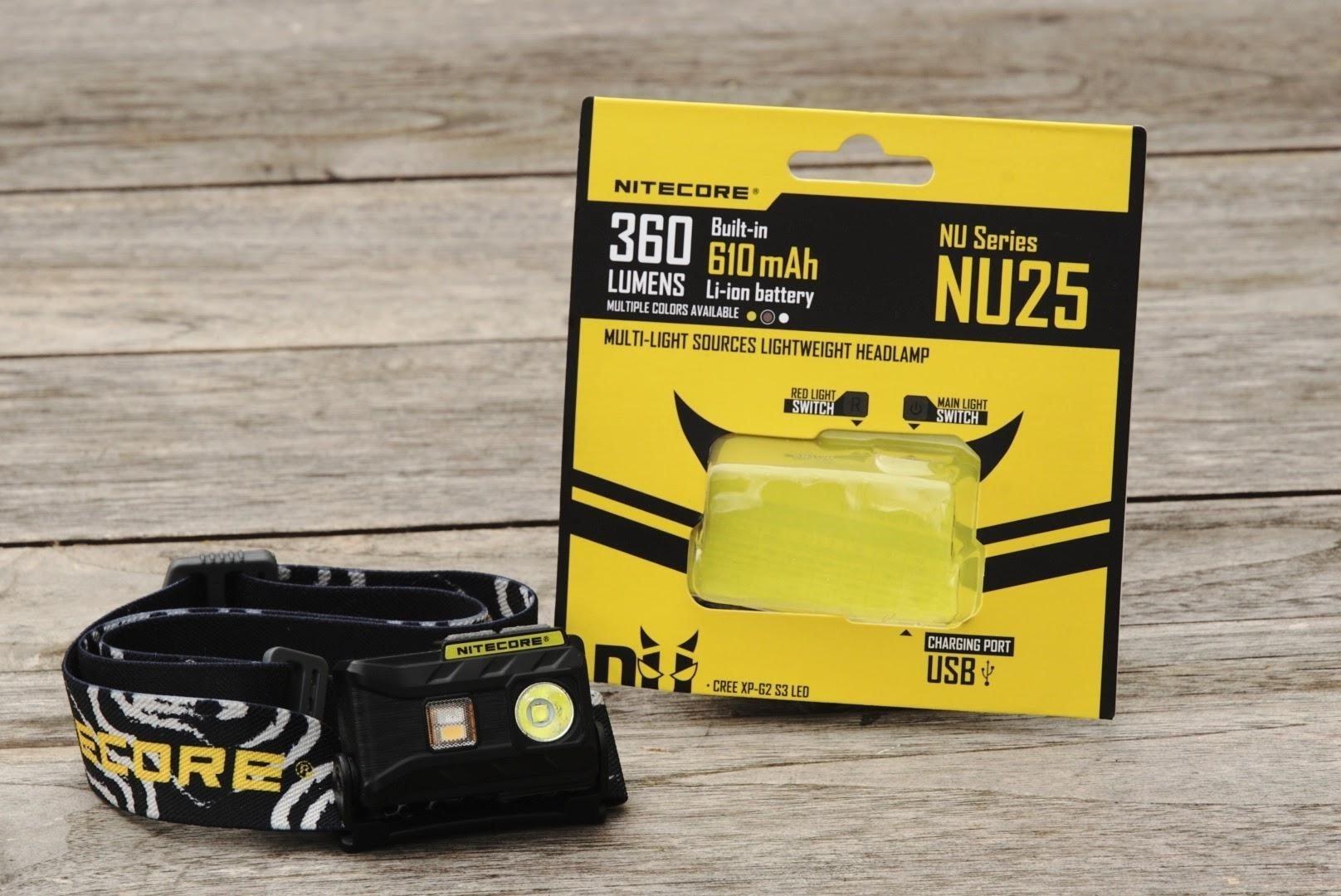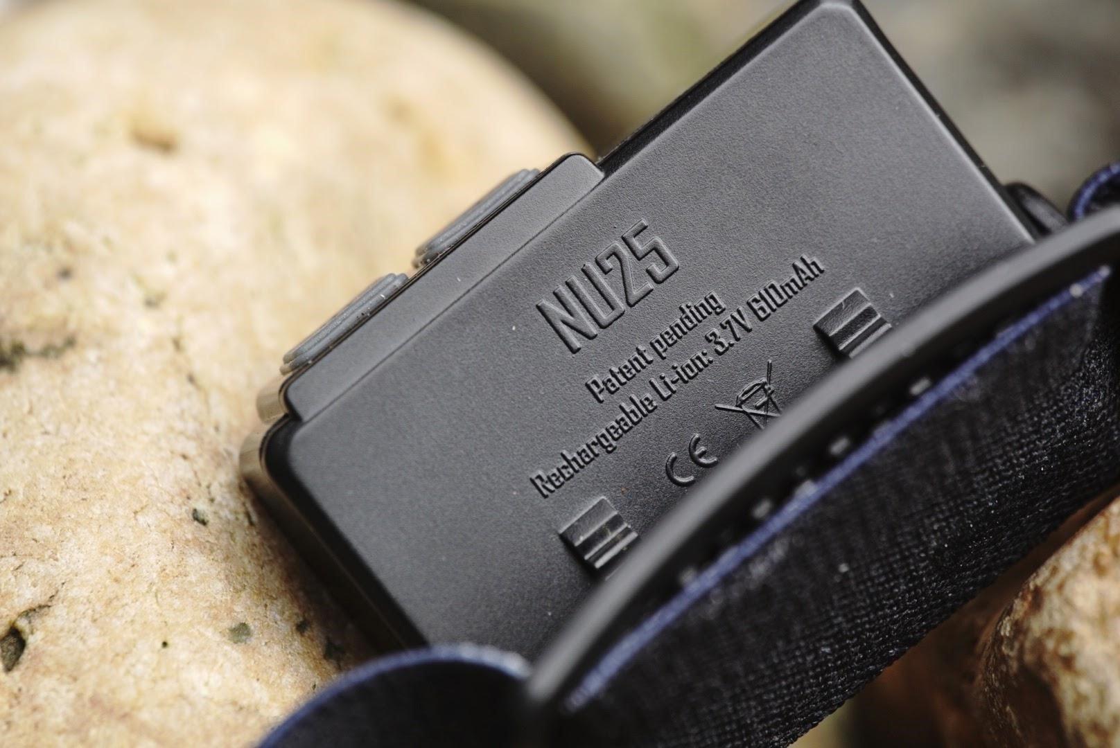 De NU25 van Nitecore is de kleinste van het stel. Een platte hoofdlamp, zonder uitstekende delen; eigenlijk is alles geminimaliseerd aan deze lamp, zonder dat het te klein overkomt. Zelf vind ik het ontwerp goed geslaagd; de vele accenten doen het goed bij deze lamp. Wat opvallende details zijn de “ruwe” lens die voor de secundaire leds zit. Dit zorgt voor een betere spreiding van het licht. De vrij ondiepe lens van de XP-G2 S3 led heeft een “orange-peel-reflector”. Ook bedoeld om de lichtstraal wat minder geconcentreerd uit de lens te laten komen. De hoofdband heeft een goede dikte en een special strip aan de binnenkant om zweet beter af te voeren. Een echte lichtgewicht, die NU25 en bovendien een praktisch ontwerp met goede “looks”.