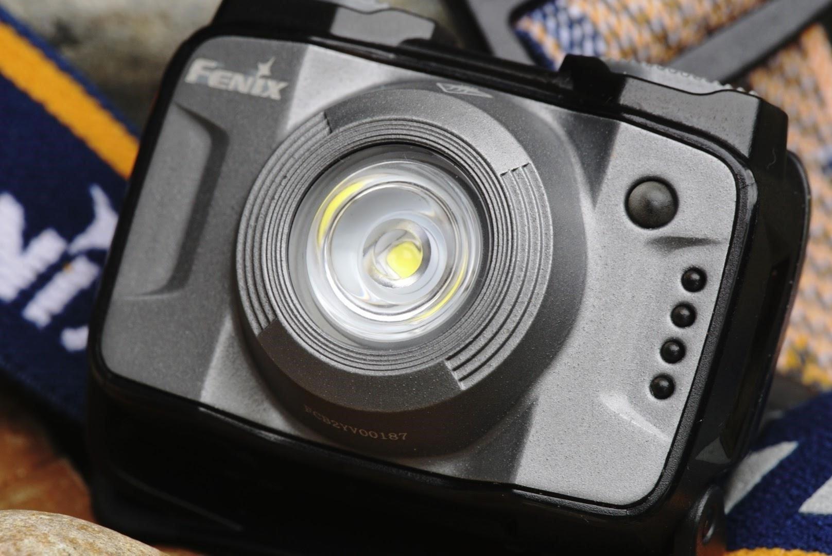 Zoals ik al eerder aangaf straalt de Fenix HL12R klasse uit: Degenen die het merk kennen zullen begrijpen wat ik bedoel. Duidelijk dikker als de Nitecore, wat voornamelijk komt doordat de lens uitsteekt. De HL12R doet wat denken aan een compact-camera qua ontwerp. Het gebruikte aluminium geeft net wat meer uitstraling dan aan de lamp dan de rest; bovendien kan de lamp een stootje hebben. Opvallend aan de lens is de gekantelde XP-G2-led waaromheen een reflector met een soort interne-reflectie zit die voor de spreiding van de bundel zorgt. Ander opvallend detail is de doorzichtige behuizing waardoor je naar binnen kunt kijken in de HL12R. De hoofdband is goed strak en heeft een ruwe binnenkant wat voorkomt dat de lamp wegglijdt tijdens het sporten. Naar mijn idee de meest robuuste van het stel en toch een fraai en compact ontwerp.