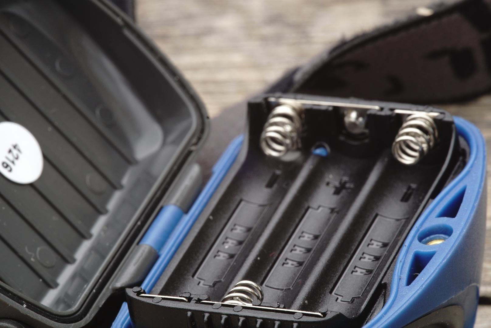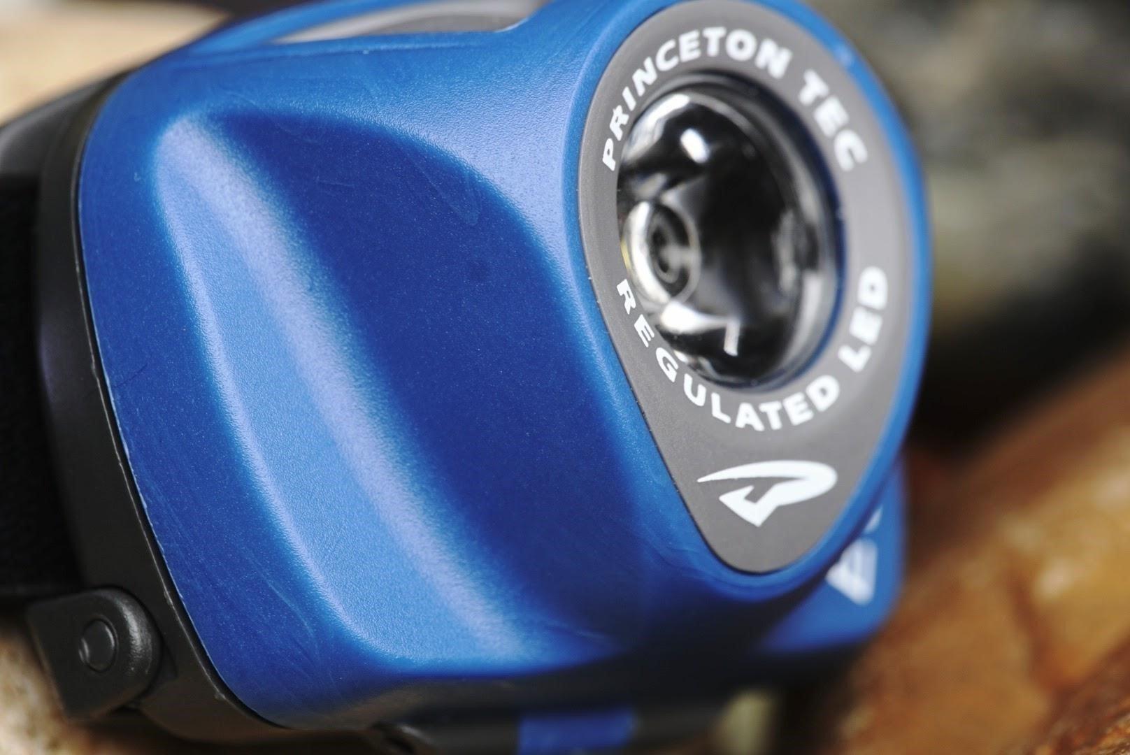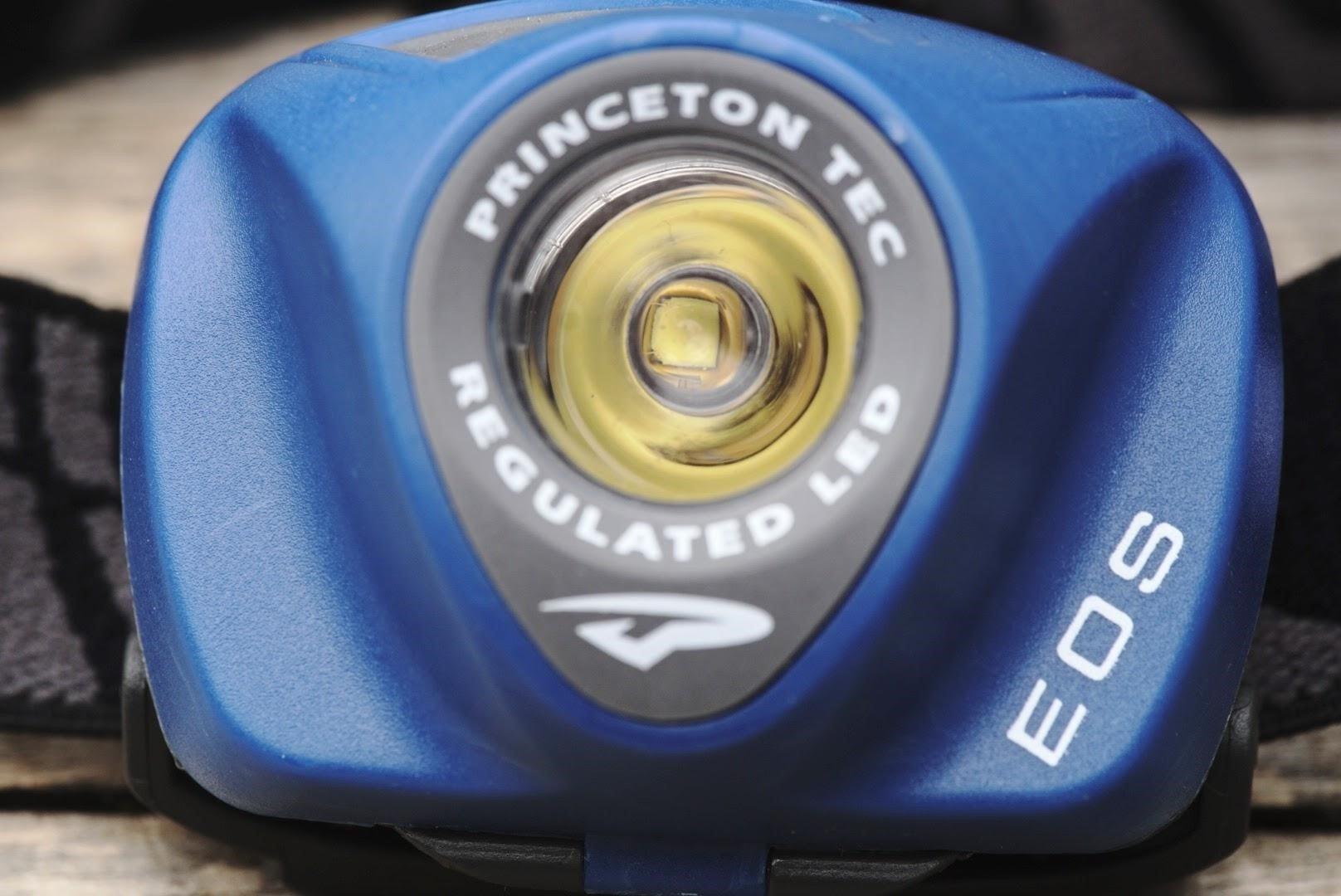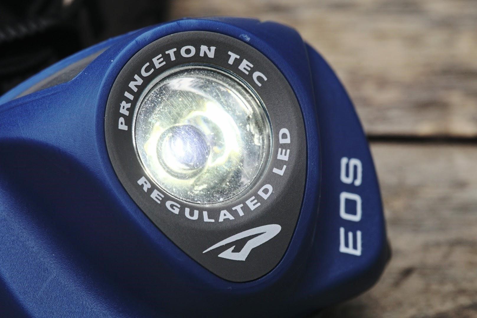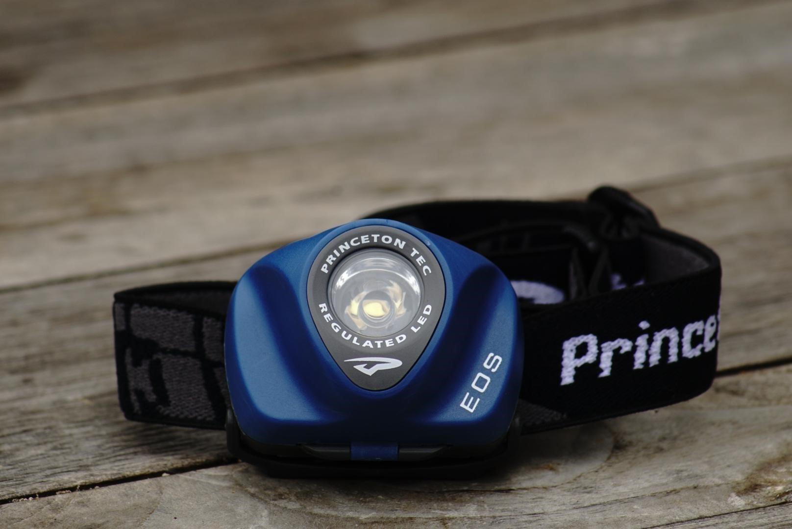 De Princeton TEC is de zwaarte van de vijf en heeft ook weer duidelijk zijn eigen gezicht. Het ontwerp is wat eigenzinnig, maar ik vind de EOS zeker niet lelijk. Ondanks de plastic “looks” zit de lamp wel degelijk in elkaar. De led lijkt niet helemaal in het midden te zitten. De lens, die behoorlijk krasgevoelig blijkt, heeft een soort vergrootglas ingebouwd die zorgt dat de hotspot van de lichtstraal een “boost” krijgt en wat verder reikt. Om in het batterijcompartiment te komen moet je een schroef losdraaien; je kunt na het plaatsen van de batterijen het klepje ook zonder schroevendraaier goed vastzetten. De batterijen laten zich zonder problemen plaatsen. Een ander opvallend detail aan de Princeton Tec EOS is de grote schakelaar bovenop de lamp. Deze ligt verzonken in het ontwerp maar is door gebruik van randen en verschillende hoogtes toch prima te lokaliseren. De hoofdband is eenvoudig en had wat mij betreft wat breder mogen zijn. De wat zware en grote EOS zit degelijk in elkaar, al overheerst het kunstof-gevoel wel wat bij deze lamp.