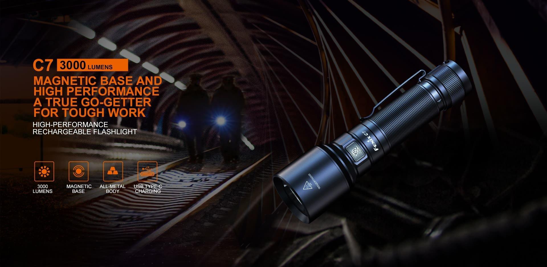 Ontdek de nieuwste Fenix zaklamp: de C7! Deze oplaadbare krachtpatser is speciaal ontwikkeld voor werkzaamheden in de industriële sector. Hij staat zijn mannetje onder de meest extreme omstandigheden. Zo overleeft hij bijvoorbeeld een valhoogte van anderhalve meter. Met een maximale output van 3000 lumen en een magnetische onderkant om hem mee op metalen oppervlakken te bevestigen is dit de ideale zaklamp voor in iedere gereedschapskist.