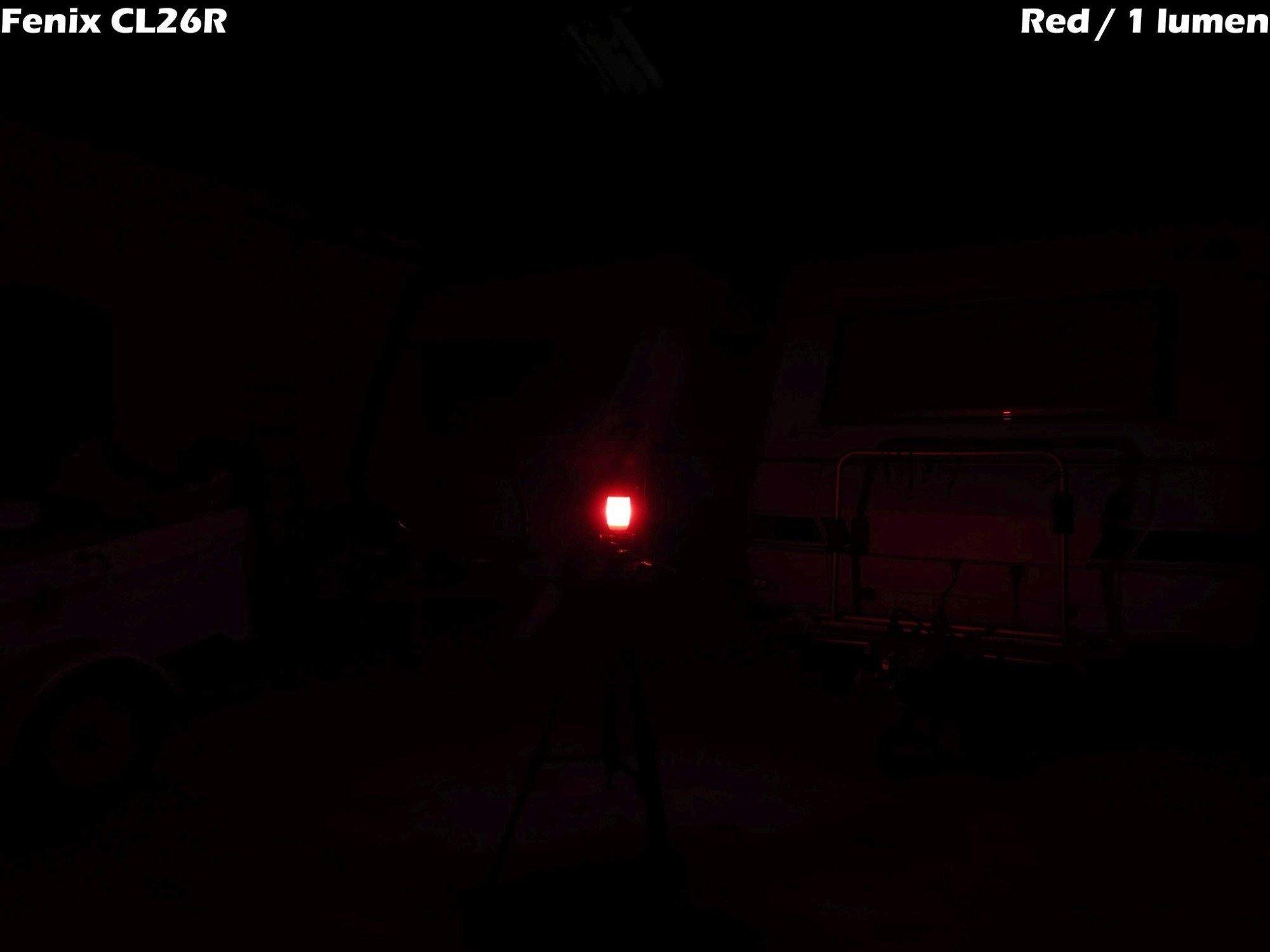 Het lichtbeeld van de CL26R is zoals je van een campinglamp kan verwachten: De lamp straalt rondom diffuus licht uit. Zo krijg je in een straal van zo’n maximaal 20 meter gelijkmatig licht. Geschikt voor die gezellige lange avond in de tuin of op de camping. Op de hogere standen kan het licht wat verblindend werken wanneer de CL26R op ooghoogte staat; ik los dit meestal op door de lamp wat hoger op te hangen. Wil je trouwens wat meer “sfeerlicht” (de lichtkleur van de hoofdverlichting is vrij koud), dan is ophangen en de onderverlichting gebruiken een goede optie. Ook kun je kiezen voor de “front-optie”, zodat je het licht iets van je weg kunt draaien wanneer je dat te fel vindt. Zelf gebruik ik de onderverlichting graag bij het (kaartlezen) in het donker en ‘s nachts wanneer ik niemand wil storen. Ook rood is in dit geval een goede optie, je ziet zelf precies genoeg en niemand wordt er wakker van. Het knipperend rood licht is goed bruikbaar als markering; bijvoorbeeld bij pech maar ook als veiligheidslamp tijdens een wandeling buiten de bebouwde kom.