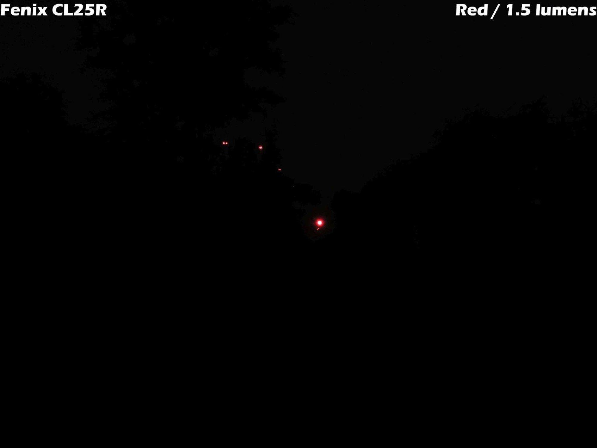 De rode optie is vrij zwak qua output, maar op korte afstand zie je net genoeg om je goed te kunnen oriënteren.