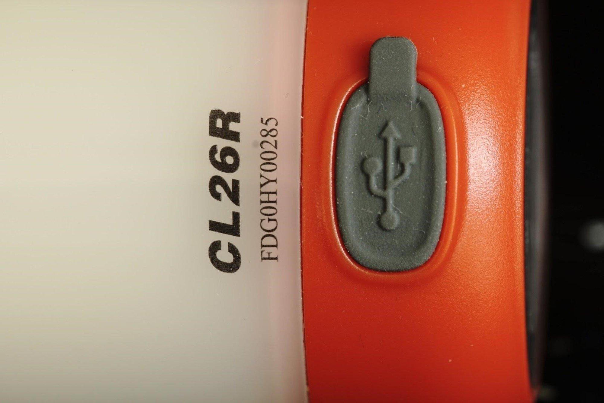 De CL26R is geen ingewikkeld product waarvoor je de handleiding door moet spitten voordat je begrijpt hoe hij werkt. Let erop dat de 18650-batterij beschermd wordt tegen onbedoeld aangaan van de lamp tijdens het transport middels een plastic dopje. Dit moet je dus eerst verwijderen voordat je verder gaat. Daarna is het erg eenvoudig: Steek de meegeleverde kabel in een daarvoor geschikte lader en het proces start vanzelf. De vier indicatoren geven aan hoe vol de accu is. Het volledig laden van een batterij duurt zo’n drie uur, dus daar heb je overdag ruim de tijd voor. Overigens is het handig om een setje CR123A-batterijen bij je te hebben voor noodgevallen. Deze kun je uiteraard niet in de lamp opladen, maar ze kunnen goed uitkomen wanneer de accu leeg is en blijven ook bij vrieskou uitstekend hun werk doen. Je kunt de accu of batterijen altijd eenvoudig checken wanneer de lamp uitstaat door de powerknop eenmaal kort in te drukken. Wanneer er nog maar een lampje knippert tijdens het gebruik wordt het de hoogste tijd om de accu te laden of de batterijen te vervangen.