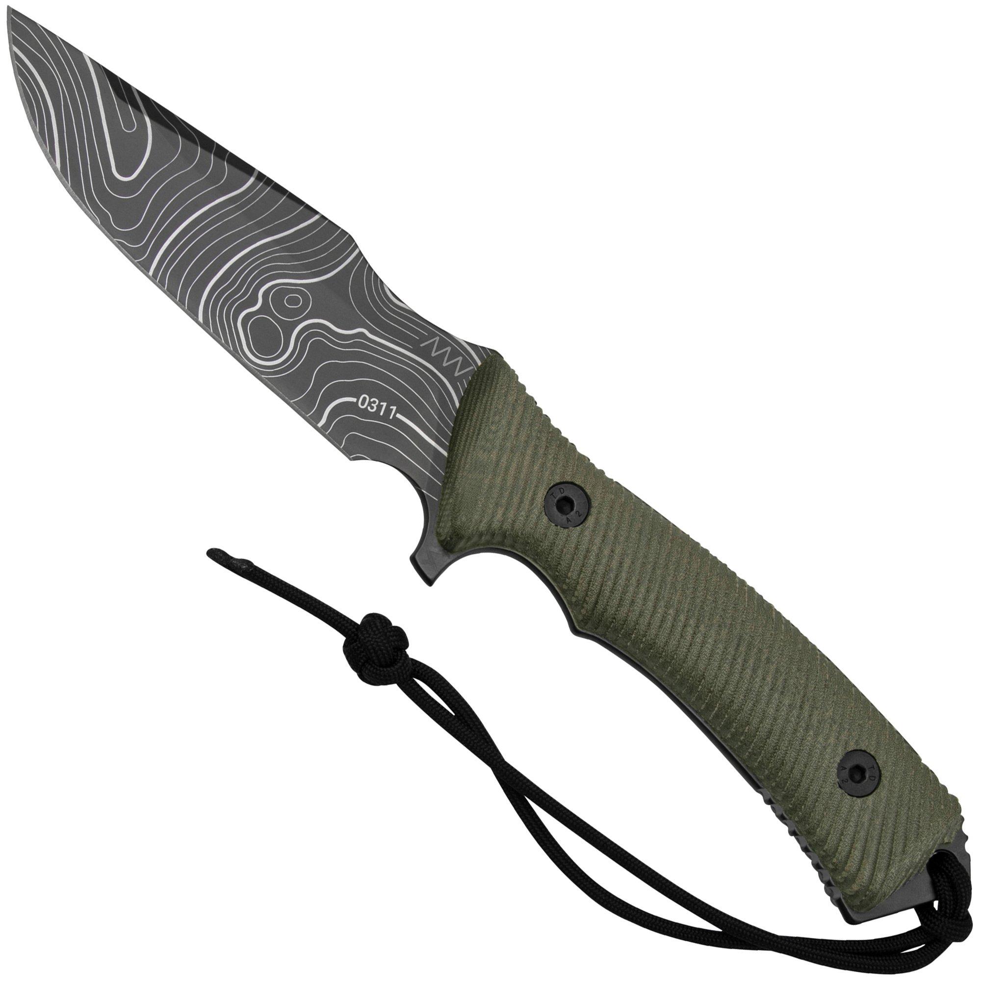 ANV Knives M311 SPELTER DLC Topo Elmax, Olive Micarta Handle, Black Kydex Sheath, survivalmes