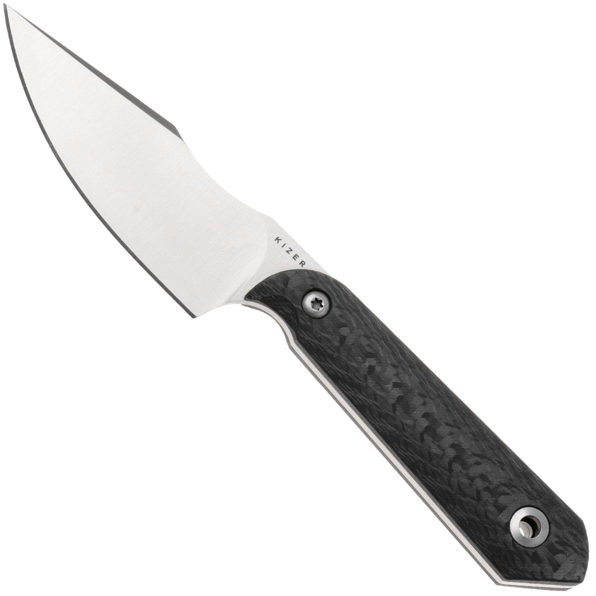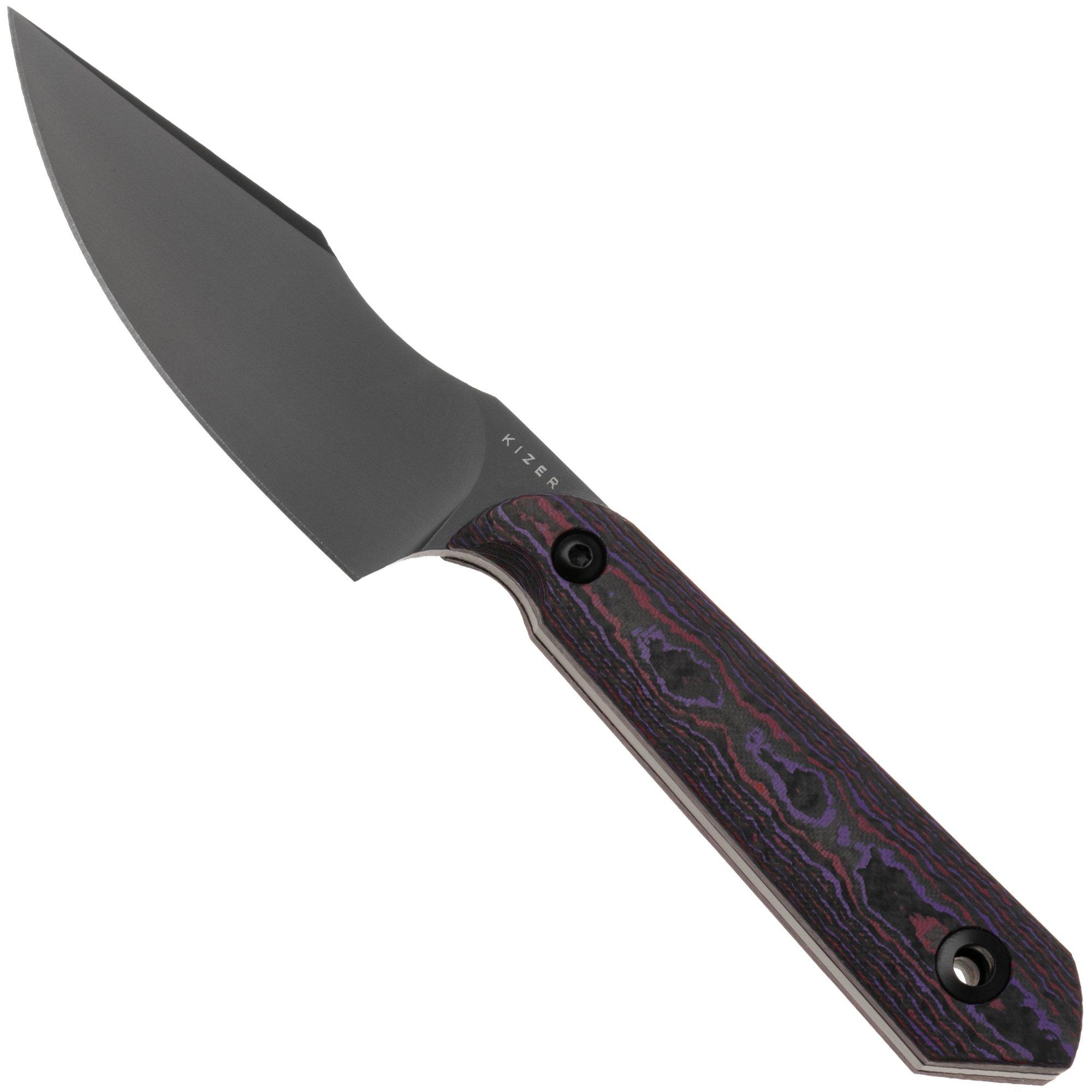 Kizer Harpoon Mini 1040S9, Black CPM S45VN, Red/Purple/Black Fat Carbon, vaststaand mes, Maverick Customs design