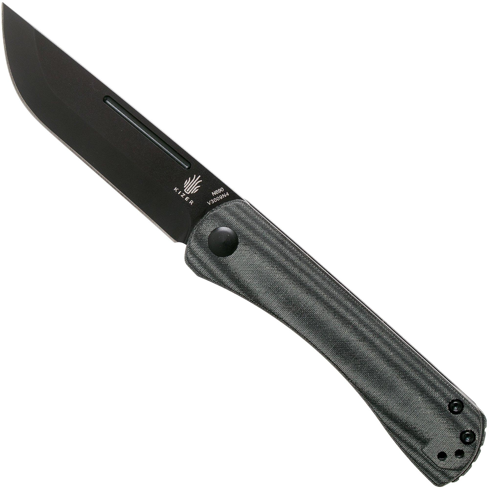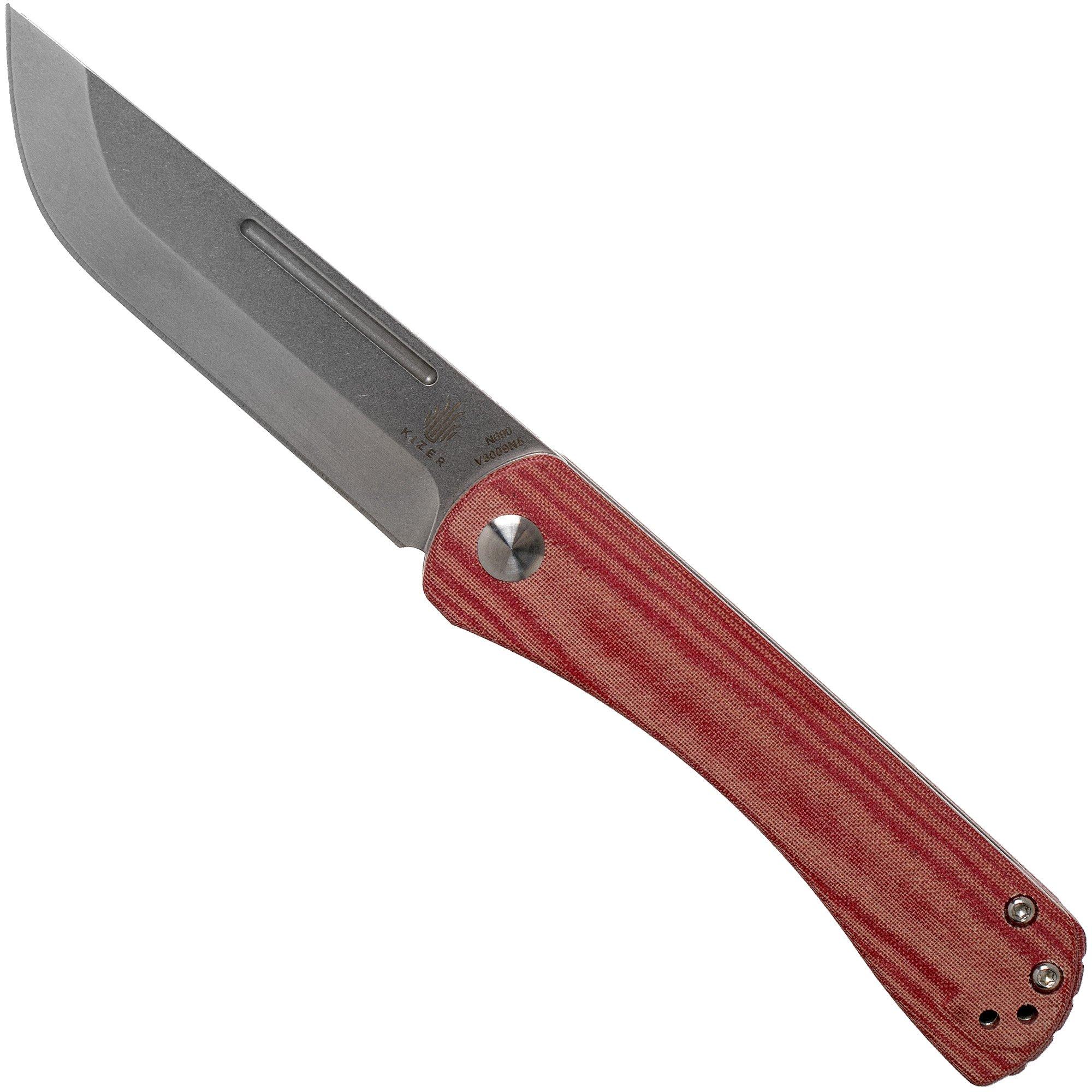 Kizer Pinch V3009N5 Brown Micarta zakmes, Rolf Helbig design