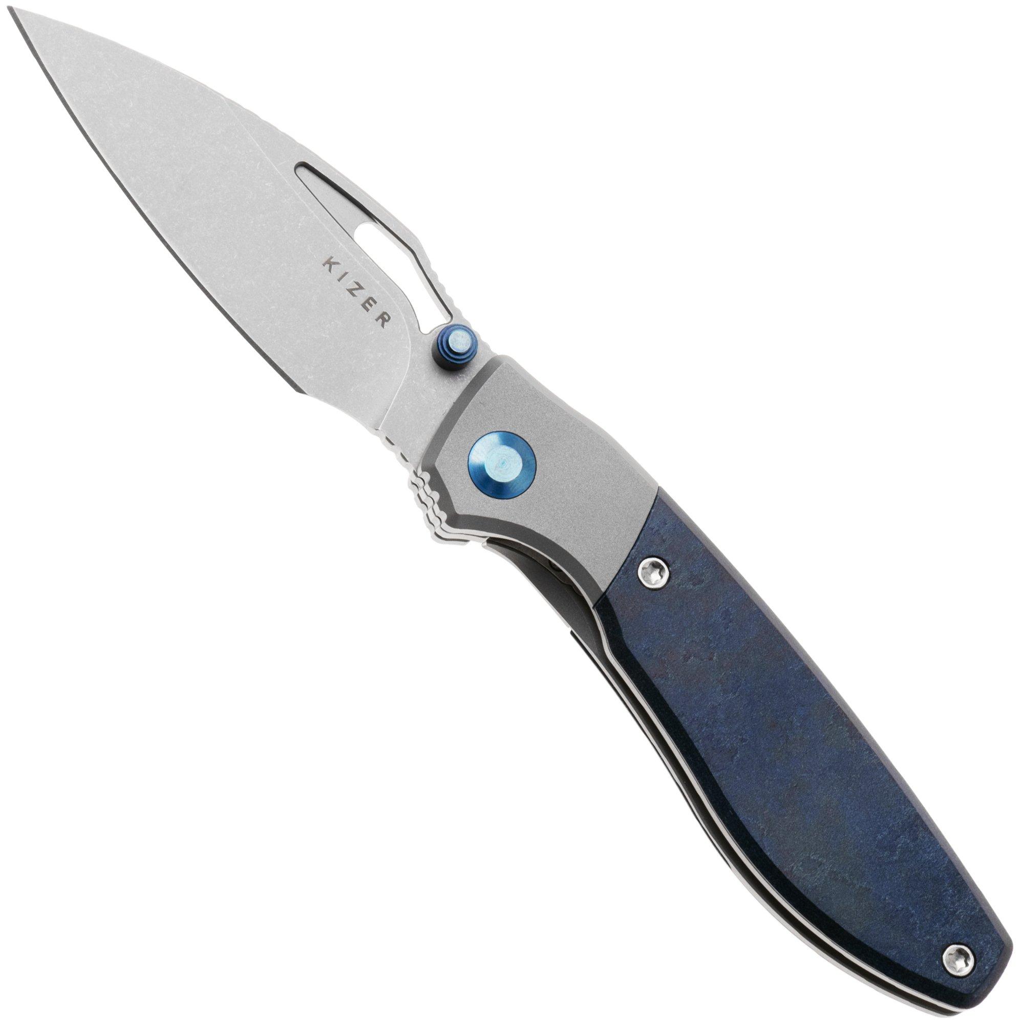 Kizer Shrike KI3746A3 Stonewashed S45VN, Titanium & Blue Richlite, zakmes, Johan Jordaan design