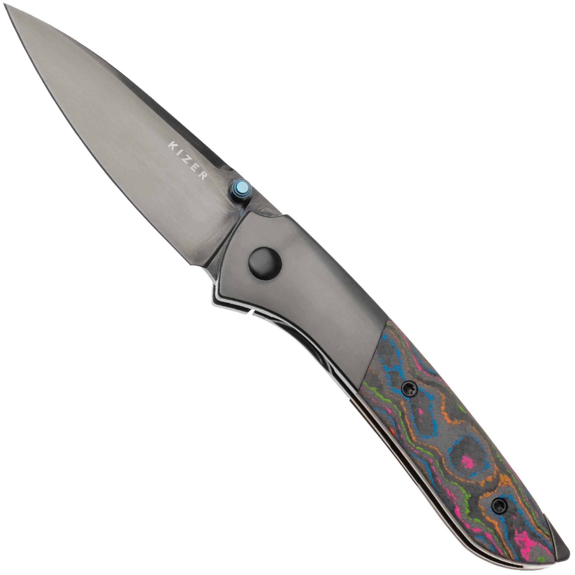 Kizer Spitfire KI3690A2 Polished DLC S35VN, Black Titanium 80's Camo Carbon, zakmes