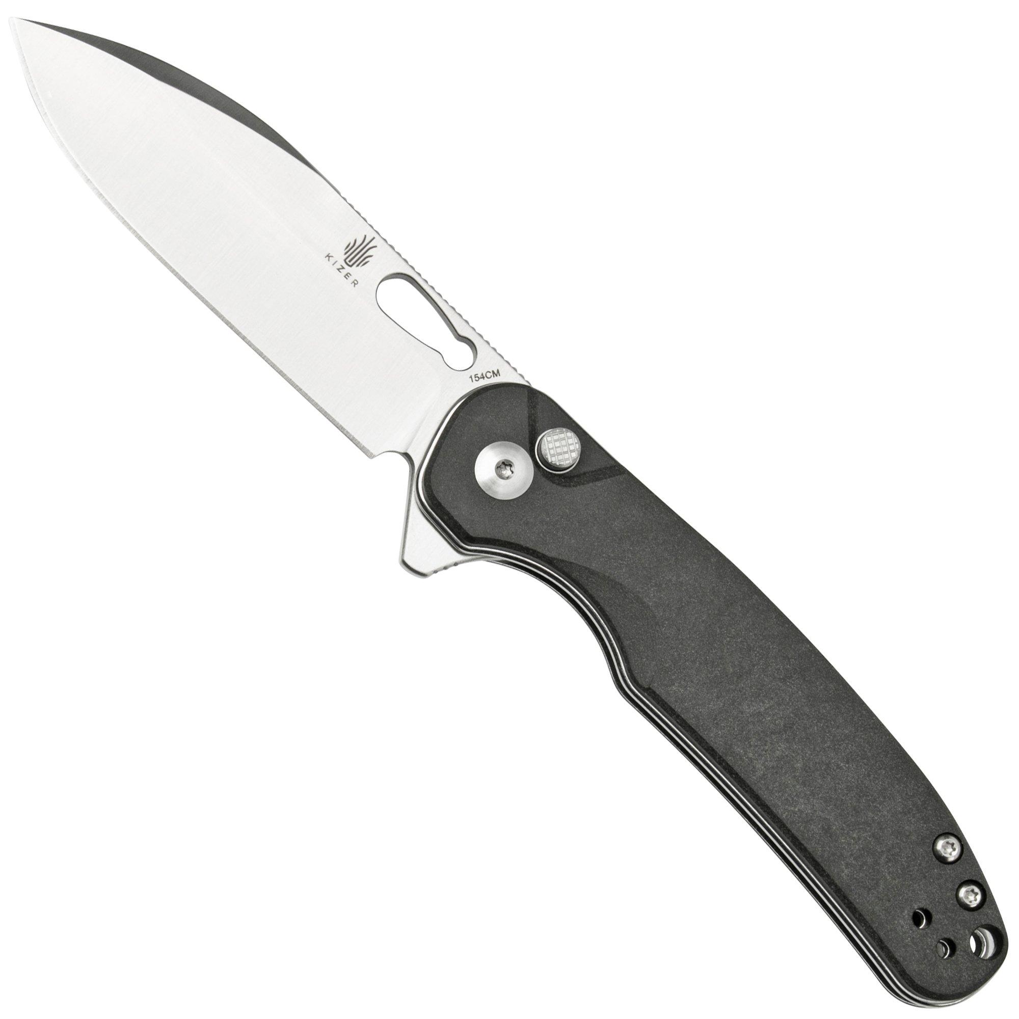 Kizer Vanguard HIC-CUP V3606C1, Button Lock Green Micarta zakmes, Azo design