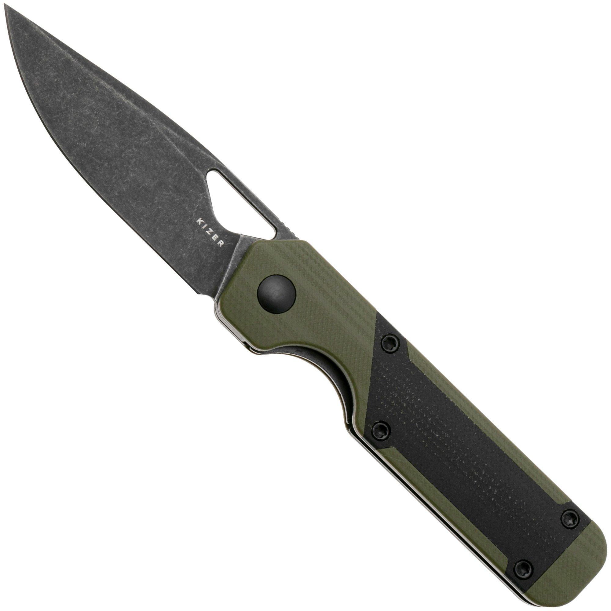 Kizer Vanguard Mini Militaw V3634SA6 Liner Lock, Satin Nitro-V, Green G10, Black G10 Inlay, zakmes, Jonathan Styles design