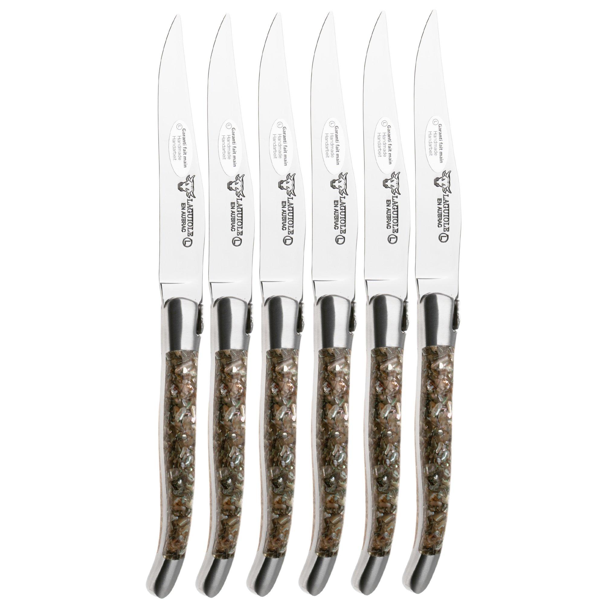 Laguiole en Aubrac Abalone Shell, Brushed Stainless Steel, 6-delige steakmessenset
