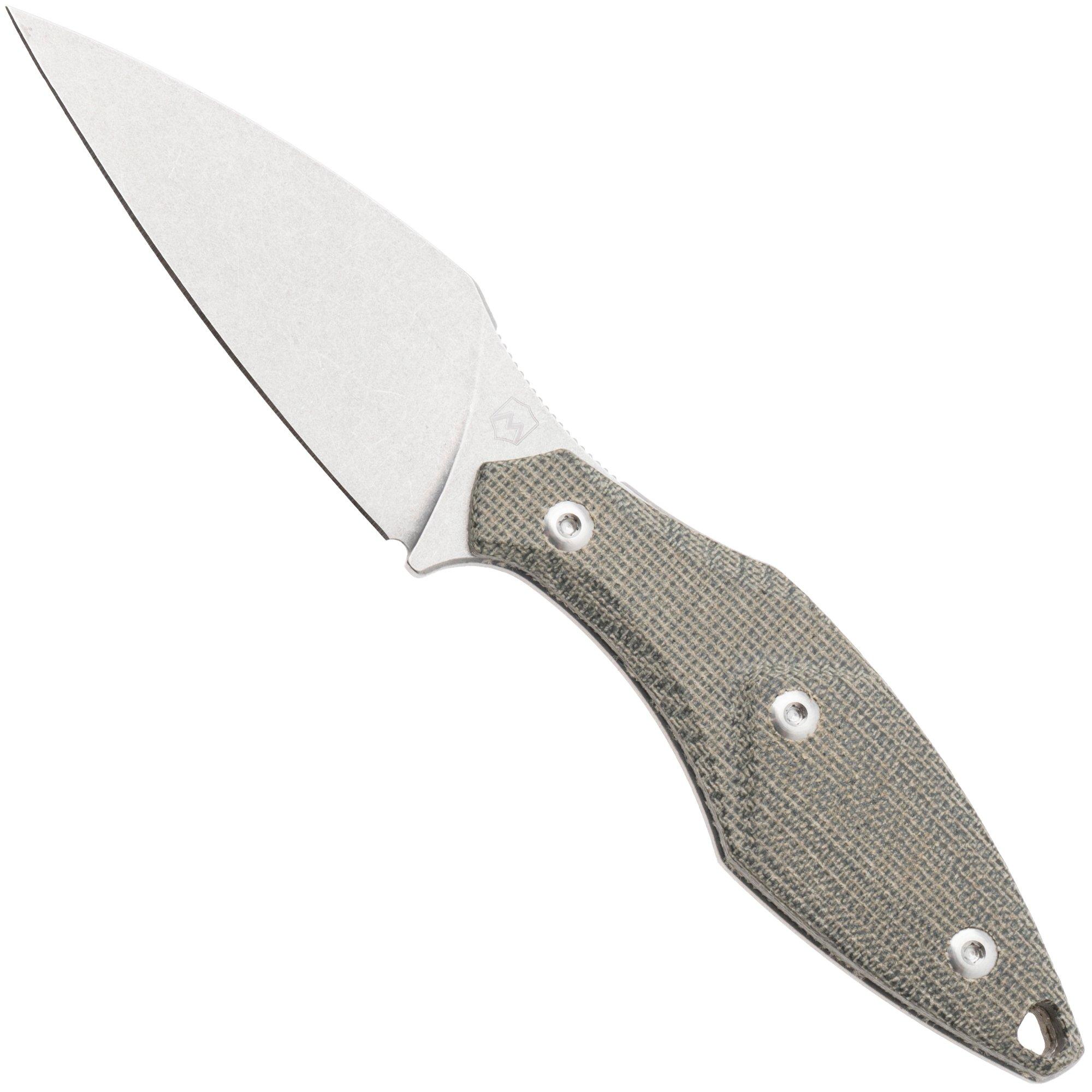 Mercury Hawky 9AWK-NCF-C Stonewashed M390, Natural Canvas Micarta, vaststaand mes