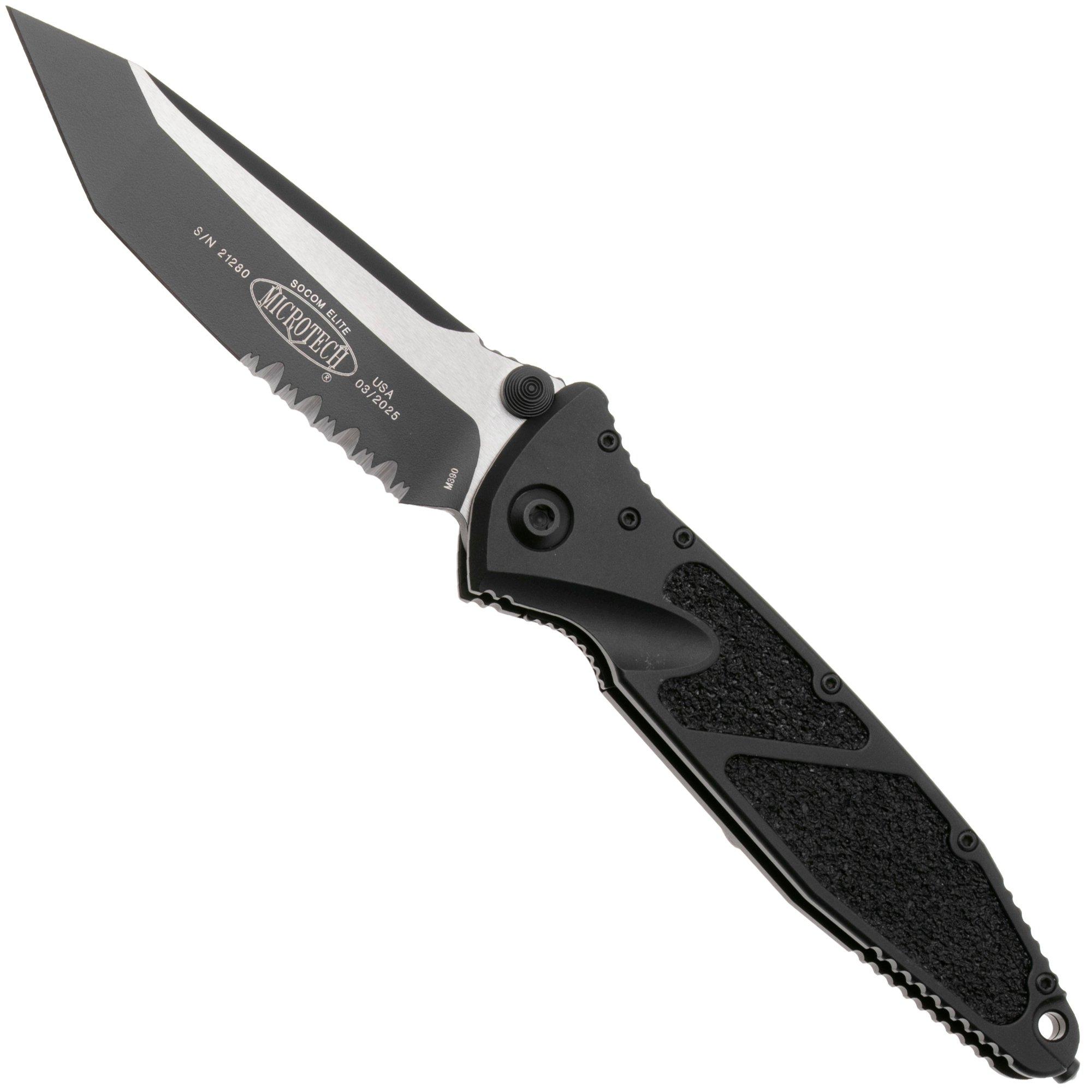Microtech Socom Elite 161-10AP, Apocalyptic Stonewashed M390 Tanto, Black Aluminum zakmes