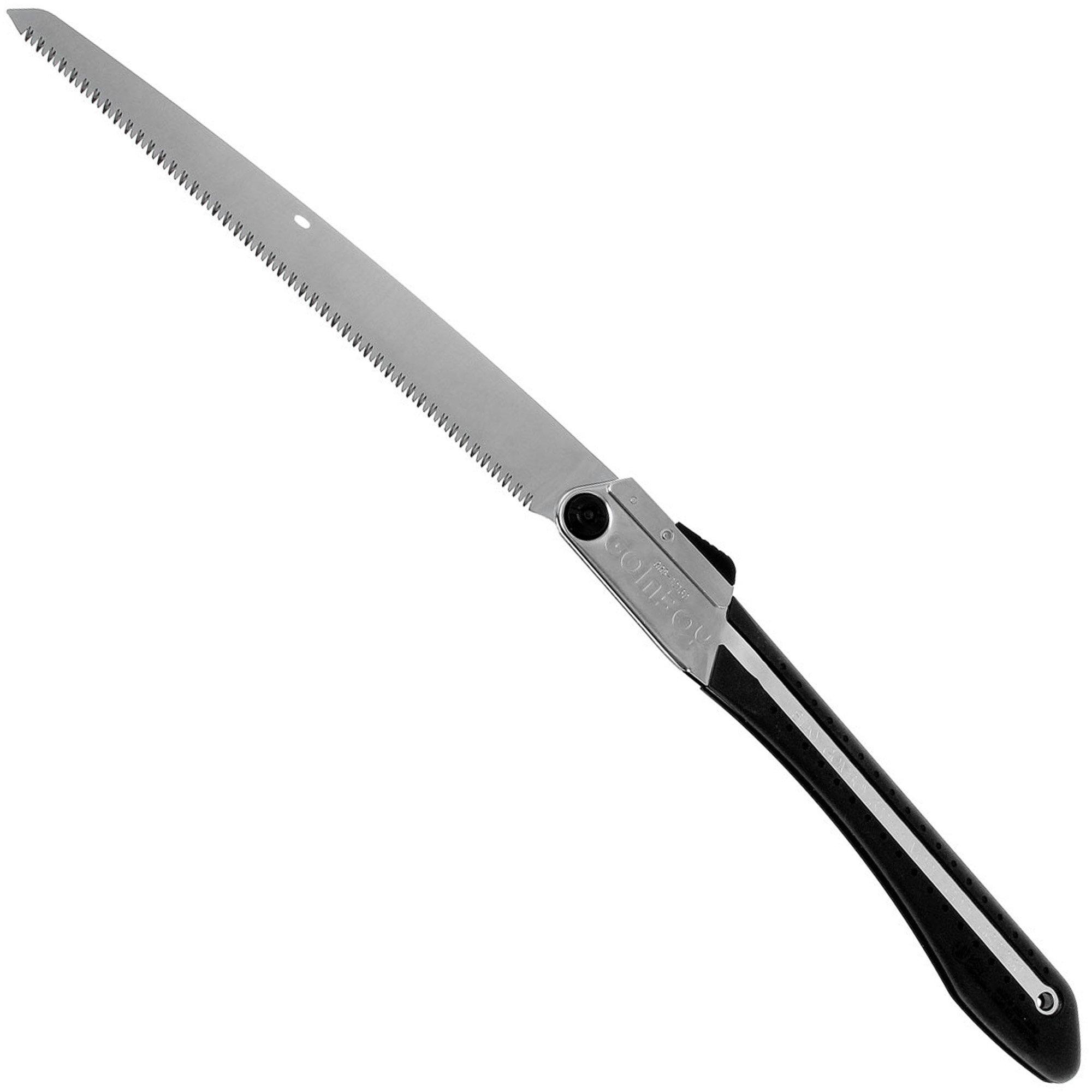 Scie de très bonne facture. Attention à la lame, flexible, qui pourrait vite casser en y allant comme un bourin, mais ce n'est pas le but de ce type de lame. Scie rapidement et proprement sans forcer. Etui en plastique pratique pour le rangement à la maison. Manche long, le revêtement la maintient bien dans la main.