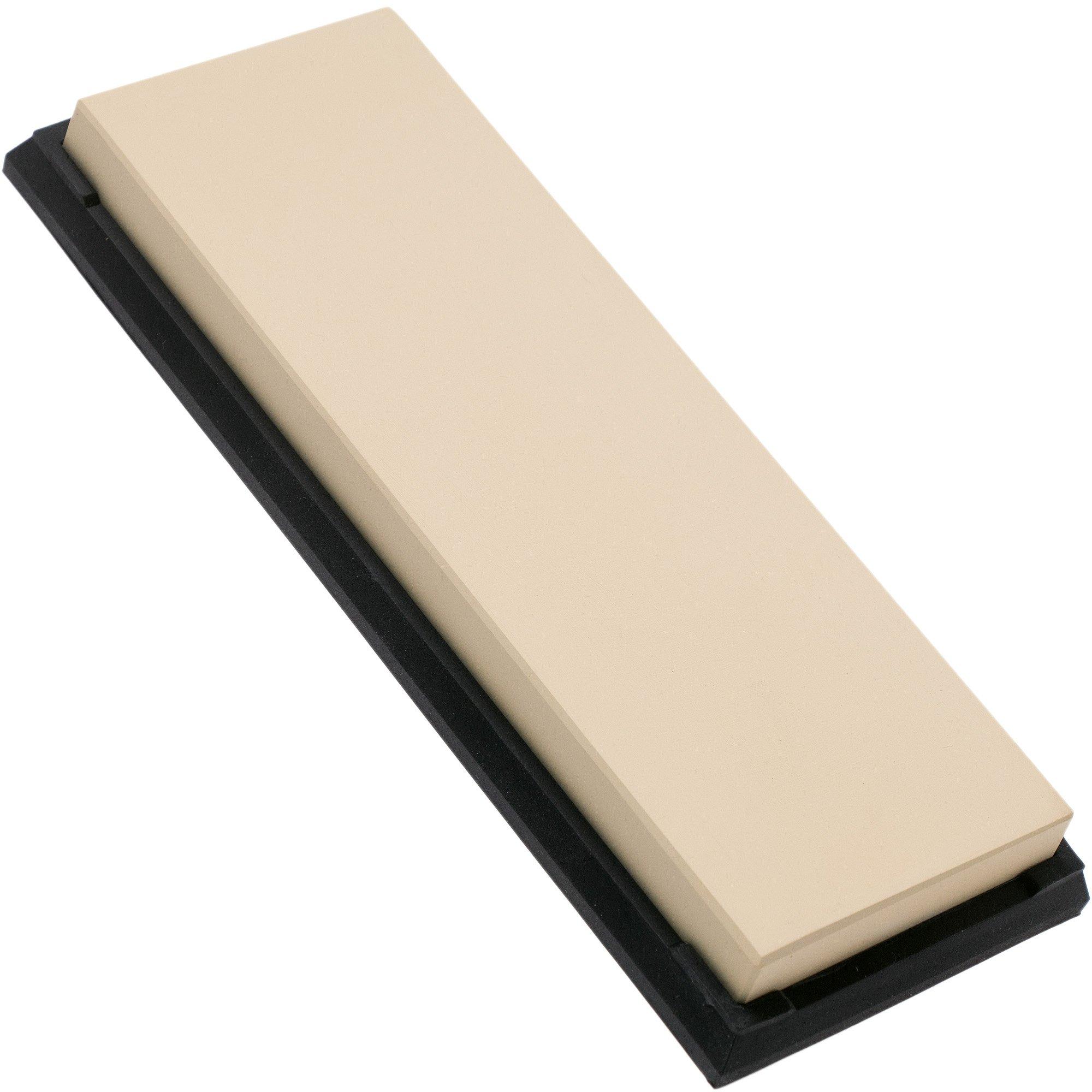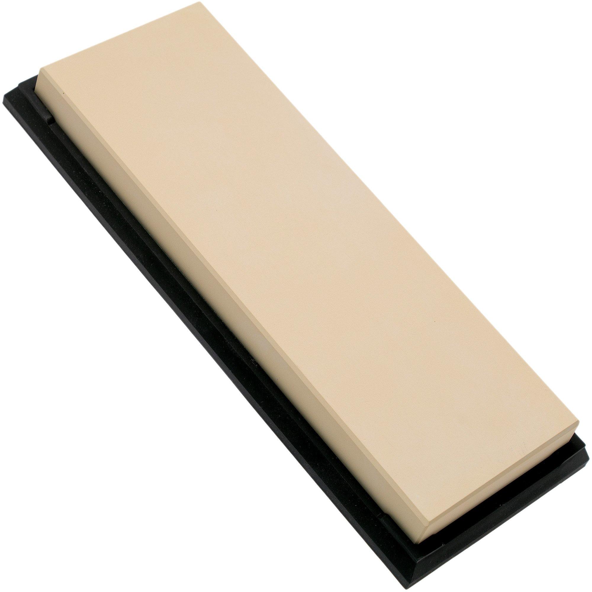 De steen is heel zacht , het is gewoon onmogelijk om hier mee een mes te slijpen ! Ik heb heel veel ervaring met slijpen van messen en zulle slechte steen heb ik nog nooit gehad De steen slijpt niet masr maak je mes stomper Je mes snijd gewoon in de steen omdat het zo zacht is de steen